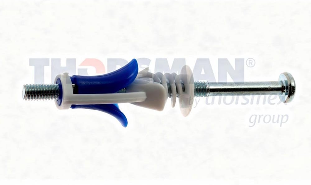 Fijathor TSP: Taquete tipo mariposa, con tornillo integrado para fijar y sujetar objetos en muros falsos como panel de yeso y tabique hueco.